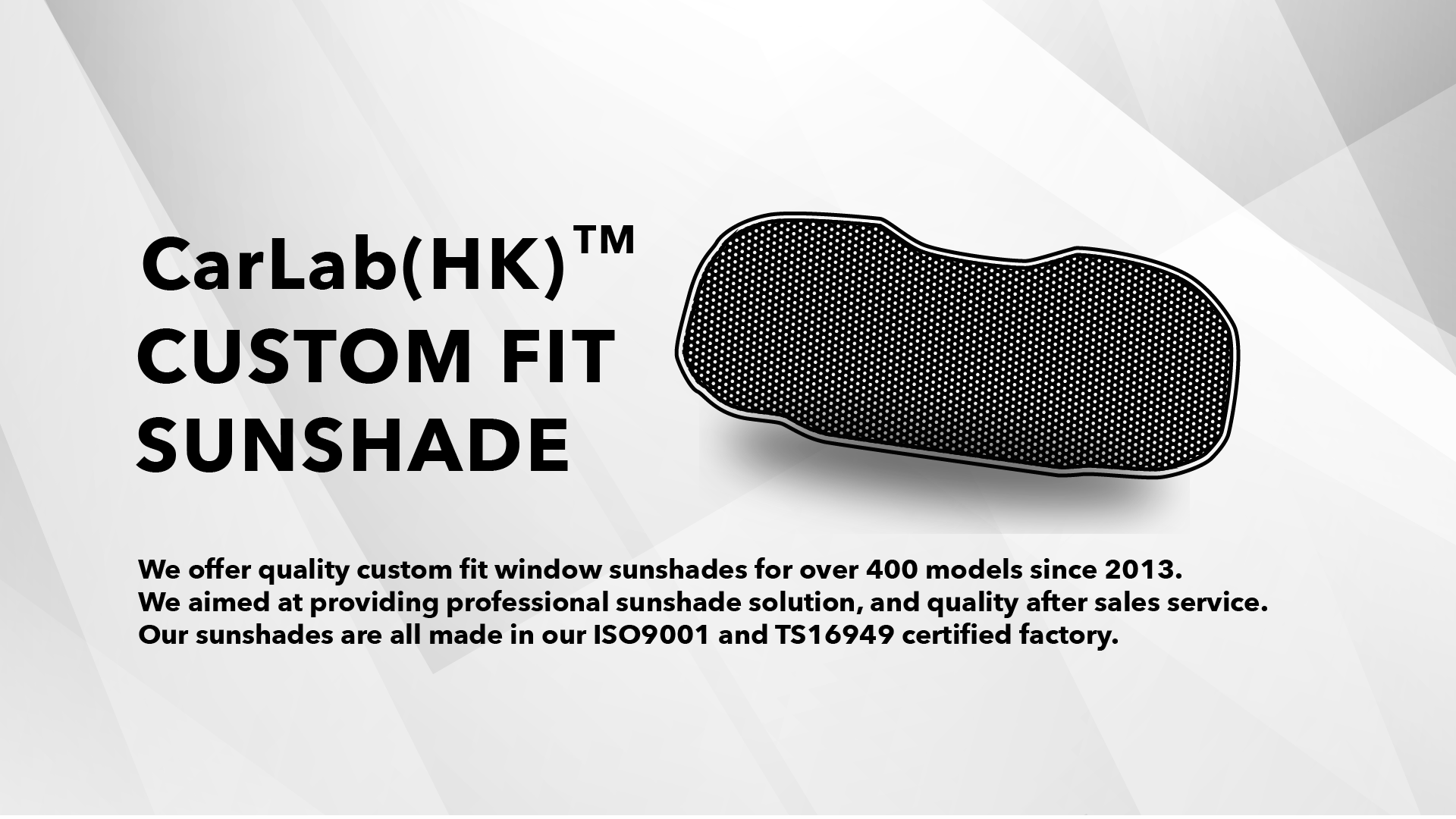 We offer quality custom fit window sunshades for over 400 models since 2013.We provide professional sunshade solution.We deliver satisfactory after-sales service. Our sunshades are all made in our ISO9001 and TS16949 certified factory.